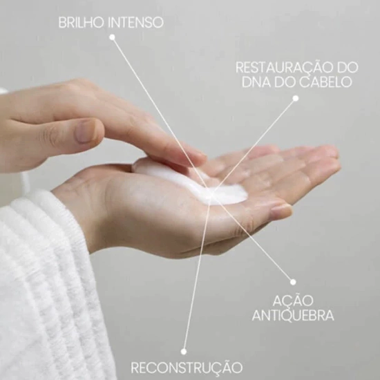 O resultado é um cabelo fortalecido, com brilho espelhado e toque sedoso.